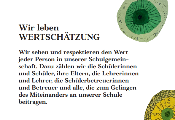 Unsere Schule ist ein Ort, an dem wir nicht nur Wissen, sondern auch Werte vermitteln und leben wollen.